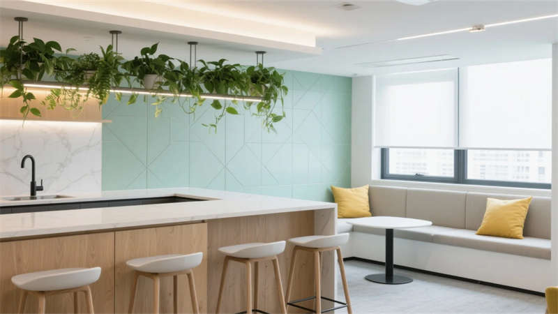 設(shè)計(jì)強(qiáng)調(diào)人文關(guān)懷,休閑區(qū)暖調(diào)燈光與柔軟卡座形成情緒緩沖帶,茶水間吧臺(tái)成為非正式社交樞紐。材質(zhì)選擇凸顯可持續(xù)理念,微水泥、再生木材與綠植系統(tǒng)貫穿始終,呼應(yīng)簡(jiǎn)約背后的生態(tài)意識(shí)。整體空間在合肥這座創(chuàng)新之城,詮釋了高效辦公與人文溫度共生的當(dāng)代范式。
