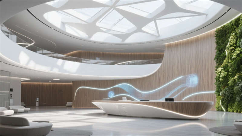 這座人工智能核心建筑以“人本科技”為基因,將自然生態(tài)脈絡(luò)植入未來科技肌理。流動空間打破傳統(tǒng)辦公界限,智能大堂的垂直森林與數(shù)據(jù)藝術(shù)共生,協(xié)作艙如發(fā)光的神經(jīng)節(jié)點(diǎn)散布于開放平面。實(shí)驗(yàn)室成為科技與自然對話的劇場,玻璃幕墻外竹林隨風(fēng)搖曳,室內(nèi)數(shù)據(jù)流如星軌閃爍。