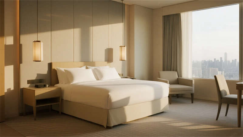 空間布局開闊通透,巨大的落地窗將自然光引入室內(nèi),與精心設(shè)計(jì)的隱藏式燈光系統(tǒng)共同營造出溫暖而富有層次的光影氛圍。從大堂的恢弘大氣到客房的靜謐溫馨,每一處細(xì)節(jié)都旨在為旅客提供一種沉浸式的、回歸本真的休憩體驗(yàn)。整體設(shè)計(jì)強(qiáng)調(diào)人與空間的情感連接,在簡約中蘊(yùn)含深度,于現(xiàn)代中流露溫潤,成就了一處城市中可呼吸、可感知的詩意棲居地。