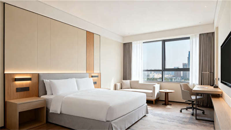 外觀設計摒棄繁雜裝飾,采用簡潔的線條與溫潤的材質搭配,既展現出酒店的大氣質感,又融入了對周邊環(huán)境的適配性,避免過于突兀的視覺沖擊。室內部分,大堂以開闊的空間布局為基礎,通過柔和的燈光與自然材質的運用,營造出溫馨且具格調的接待氛圍,讓賓客步入時便能感受到舒適感;客房聚焦居住的實用性與舒適度,軟裝搭配注重色彩的協調,家具選型兼顧美觀與功能性,為賓客打造休憩的理想空間;餐廳設計則圍繞用餐體驗展開,燈光與餐桌布局相互配合,營造出適宜聚餐或獨處的用餐氛圍;會議室注重空間的功能性,合理的桌椅擺放與完善的配套設計,滿足不同會議場景的需求;健身房以簡潔明快的風格為主,確保運動空間的通透感,讓賓客在運動時保持愉悅心情;游泳池周邊則通過軟裝與燈光的搭配,營造出放松愜意的氛圍,為賓客提供休閑放松的好去處。整體設計始終以提升賓客體驗為核心,讓每個空間既具自身特色,又能融入整體風格之中。