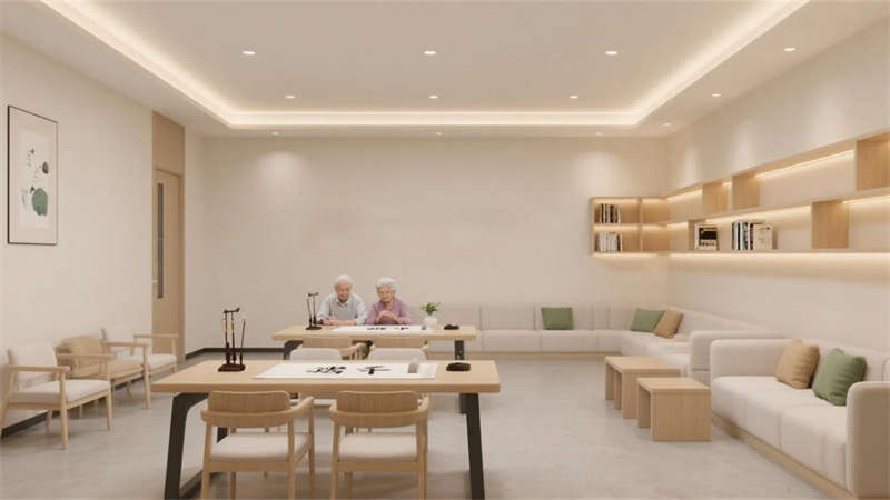 這套老年康養(yǎng)中心設(shè)計以現(xiàn)代簡約風(fēng)格為核心,營造一個溫馨、安全且充滿活力的生活空間。設(shè)計強調(diào)自然光與柔和色彩的融合,入口大廳以開闊布局和藝術(shù)元素傳遞家的溫暖,休息區(qū)則通過舒適沙發(fā)和綠植打造社交港灣。餐廳和活動室注重功能性,淺色調(diào)家具與靈活布局鼓勵日?;?,促進社區(qū)歸屬感。居住單元采用圓角細節(jié)和私密氛圍,確保舒適休憩??祻?fù)訓(xùn)練區(qū)融入防滑設(shè)計和自然光,支持健康活動。戶外庭院成為心靈綠洲,石板步道與花壇提供寧靜放松。多功能廳則適應(yīng)多樣需求,增強空間活力。整體設(shè)計以適老化理念貫穿,避免繁雜裝飾,突出簡約美學(xué)與人性關(guān)懷,讓每位長者感受到尊重與陪伴,在簡約中體驗生活的美好。